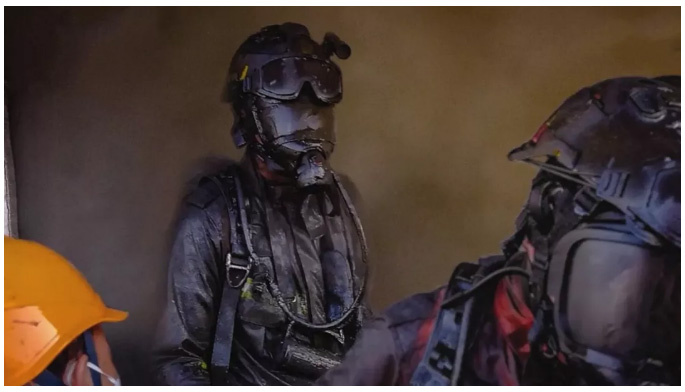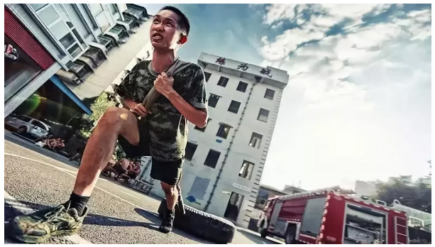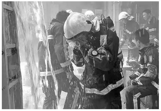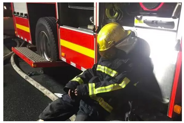 庐江县消防大队教导员陈陆和战友们携带救生装备